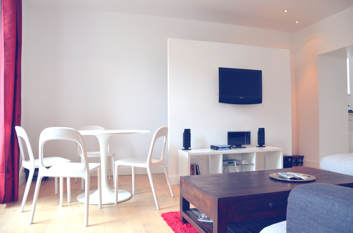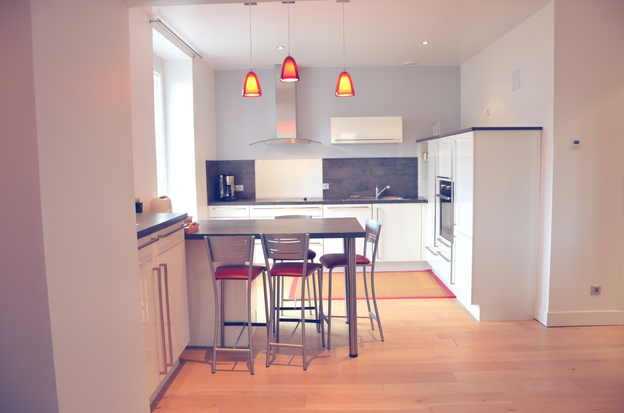 Dès votre entrée dans l’appartement, vous remarquez le style contemporain et épuré de son intérieur : une cuisine moderne et fonctionnelle donnant directement sur la pièce principale confortablement équipée ; deux chambres, la première comprenant un lit double, la seconde deux lits une personne.